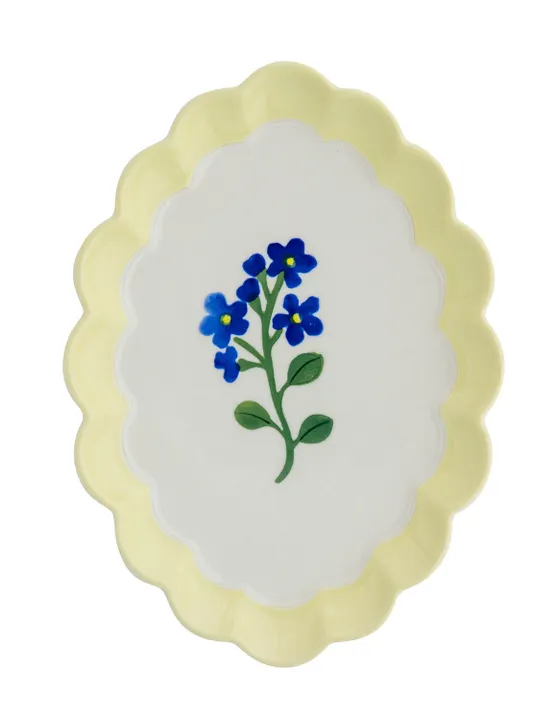 お花屋さんで花束を見繕うようにテーブルコーディネートを楽しむ、そんな思いを込めたテーブルウェアシリーズです。 額縁のようなリムが付いた、お部屋に飾りたくなるようなお花のプレート。 柄ごとに形が異なるこだわりのデザインです。 おもてなしにぴったりのシリーズは、全柄揃えていただきたい気持ちを込めて作りました。 プレート単品使いはもちろん、焼き菓子とマグカップを載せて楽しいティータイムを。 それぞれの花言葉にも注目です。 ローズ…上品、感謝、幸福 ミモザ…優雅、友情、感謝 ブルースター…信頼しあう心、幸せな愛 母の日の贈り物にも最適です。 是非マグカップ、コースター、プレイスマットとともにご展開ください。