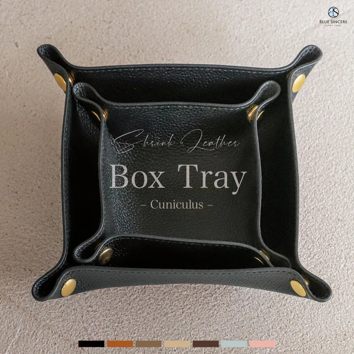 【 ブルーシンシアとは? 】 「ブランドの発展とともに、バングラデシュの社会問題を解決する」という理念を掲げ、バッグや財布を自社工場のバングラデシュの職人たちと、その土地の素材の可能性を追求し、先進国でも通用する高機能なプロダクトを生産しています。 【 選び抜いた環境想いの本革シュリンクレザー 】 「ずっと長く愛用してほしい。」その想いから素材選びに徹底的にこだわりました。素材は耐久性に優れた植物タンニン鞣し加工をしました。すぐに傷が付いてしまう羊革や合革では使う度のお手入れが大変ですが、傷が付きにくく目立ちにくい革を使用しているため毎日ガシガシお使い頂くことができます。 【 ワンタッチのボタン着脱式 】 BLUE SINCEREの小物トレーの組み立て方は、シンプルにボタンで留めるだけです。 ボタンでパチッと3秒で組み立てることができます。持ち運びの際やマウスパッドとして使いたい時はボタンを外すだけ。自由自在に変えてあなただけの使い方ができます。 【イチオシポイント♪】 オシャレな小物入れがトレータイプで新登場!アクセサリーや鍵、デスク周りの小物の収納ケースに最適です。特筆すべきはおしゃれなデザイン!目につくところに置いていても気にならない洗練されたデザインを意識しています。職場のデスクにもいいですよね♪私はリビングテーブルの下に置いています。機能性もユニークで、まずスナップボタンを外せば一枚の薄いレザーマットになります。なので収納や持ち運びに便利♪さらにその状態であればマウスパッドとしても使えちゃいます。おしゃれな収納トレー、ぜひおひとついかがでしょうかっ♪