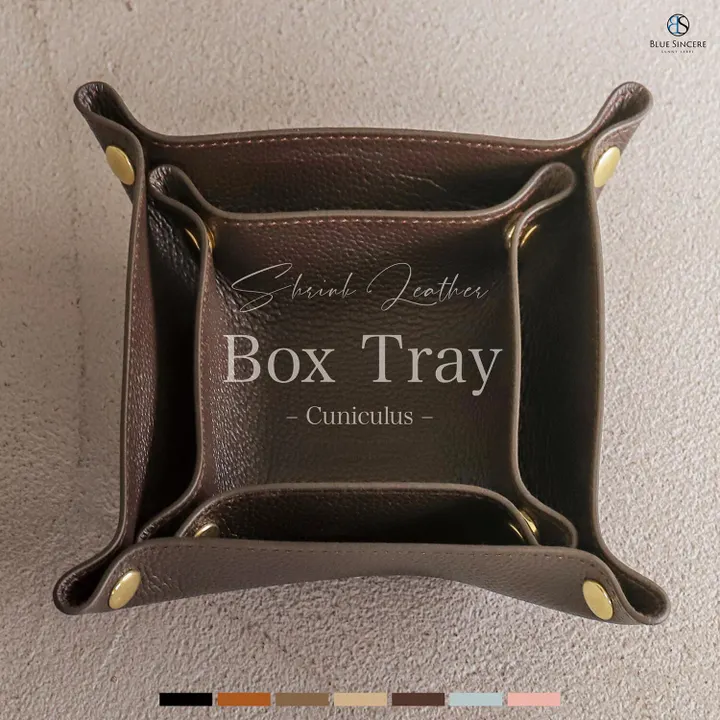 【 ブルーシンシアとは? 】 「ブランドの発展とともに、バングラデシュの社会問題を解決する」という理念を掲げ、バッグや財布を自社工場のバングラデシュの職人たちと、その土地の素材の可能性を追求し、先進国でも通用する高機能なプロダクトを生産しています。 【 選び抜いた環境想いの本革シュリンクレザー 】 「ずっと長く愛用してほしい。」その想いから素材選びに徹底的にこだわりました。素材は耐久性に優れた植物タンニン鞣し加工をしました。すぐに傷が付いてしまう羊革や合革では使う度のお手入れが大変ですが、傷が付きにくく目立ちにくい革を使用しているため毎日ガシガシお使い頂くことができます。 【 ワンタッチのボタン着脱式 】 BLUE SINCEREの小物トレーの組み立て方は、シンプルにボタンで留めるだけです。 ボタンでパチッと3秒で組み立てることができます。持ち運びの際やマウスパッドとして使いたい時はボタンを外すだけ。自由自在に変えてあなただけの使い方ができます。 【イチオシポイント♪】 オシャレな小物入れがトレータイプで新登場!アクセサリーや鍵、デスク周りの小物の収納ケースに最適です。特筆すべきはおしゃれなデザイン!目につくところに置いていても気にならない洗練されたデザインを意識しています。職場のデスクにもいいですよね♪私はリビングテーブルの下に置いています。機能性もユニークで、まずスナップボタンを外せば一枚の薄いレザーマットになります。なので収納や持ち運びに便利♪さらにその状態であればマウスパッドとしても使えちゃいます。おしゃれな収納トレー、ぜひおひとついかがでしょうかっ♪