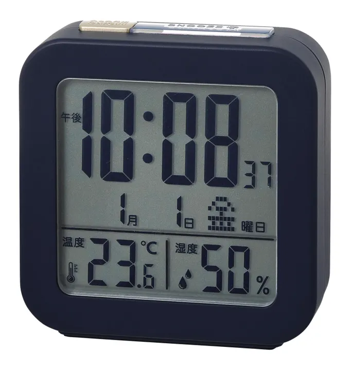 夜間常時点灯機能付きデジタル電波アラームクロック【IAC-5667】 ネイビー