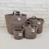 丸底フォルムの小物入れとして展開するリサイクルフェルトのポットトート。 小さいサイズ~かかえるほどの大きいサイズまで。 丸底で安定感があり、ちょっとごわっとした生地が軽量・丈夫な生地のポイント! リビング、デイリーなど様々なライフスタイルに合わせて使えます。 おすすめの使い方(雑貨:こんな物を入れると使いやすい) ・ Sサイズ(持ち手なし) → 観葉植物、お菓子、化粧水、文具 ・Mサイズ → お菓子、食器、本、デイリートート、お弁当 ・L ,XLサイズ → 服、バッグ、おもちゃ、マザーズバッグ、アウトドア(車内)、一品持ち寄りパーティー 様々なライフスタイルに合わせて使えます。