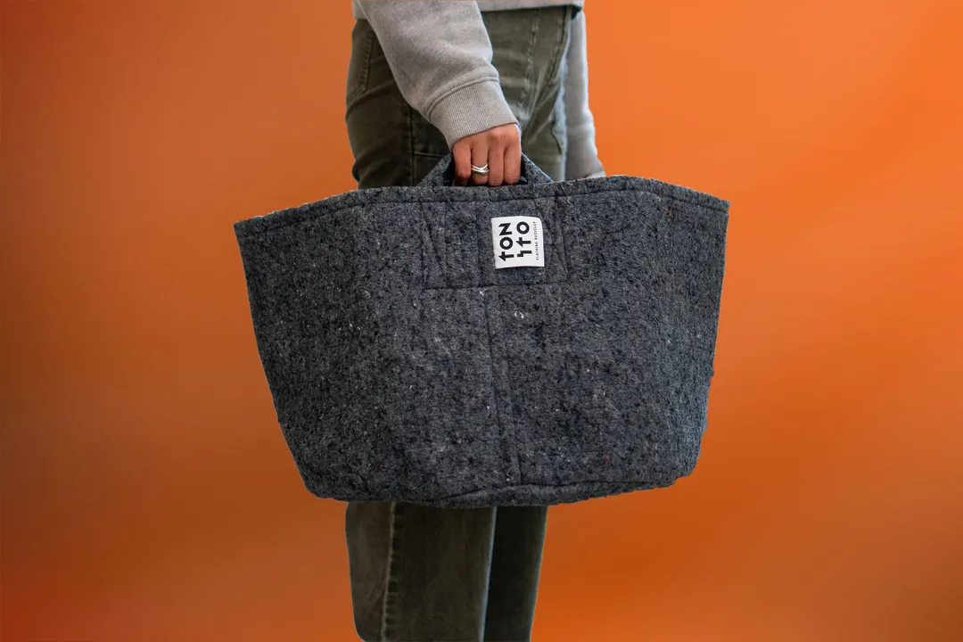 廃棄衣料の問題に少しでも向き合いたい。そんな想いを込めたTONITOの雑貨は、衣類を色分けし、染色せず服の色を生かした楽しいアップサイクル雑貨です