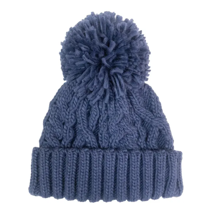 大きめのポンポンが付いたざっくり編みのケーブルニット帽。立体感のある網目模様と大きめのポンポン。小顔効果抜群。ウィンタースポーツにもおすすめのアイテム。