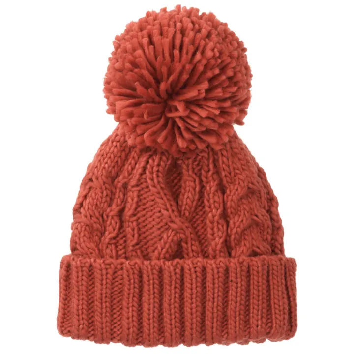 大きめのポンポンが付いたざっくり編みのケーブルニット帽。立体感のある網目模様と大きめのポンポン。小顔効果抜群。ウィンタースポーツにもおすすめのアイテム。