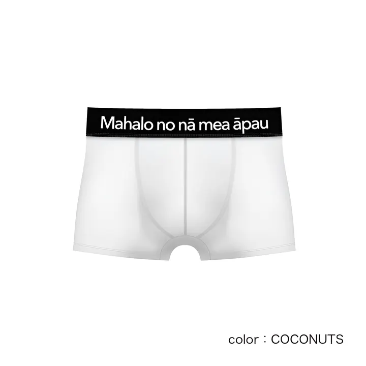 シルクのようにやわらかいバンブーコットンを使用した肌に優しいアンダーウェアブランド。 竹繊維で作られたサステイナブルな素材はふわふわな肌触りでまるで履いてないようななめらかさ。 一度履いたらやみつきなる肌心地は Haawi でしか味わえません。 履いた瞬間の程よいフィット感と伸縮性が、身体にフィットし心地よいホールド感を保ちます。 見えないからこそ、こだわりを。 Rainbow stateとも呼ばれるハワイのシンボルであるレインボーカラー6色と ベーシックカラー2色を加えた8色でご用意。 サイズはS、M、Lの3サイズ。 大切な人やご自身への想いをメッセージにのせてハワイ語のプリンティングバンドがアイコン。 プリンティングバンドは5種類からお選びいただけます。 ナチュラルなレインボーカラーで展開の為、ジェンダーレスでお選びいただけます。 [カラー] COCONUTS (ココナッツ) ※お使いの端末のディスプレイモニター(画面)や部屋の照明等により実際の商品と色味が異なる場合がございます。