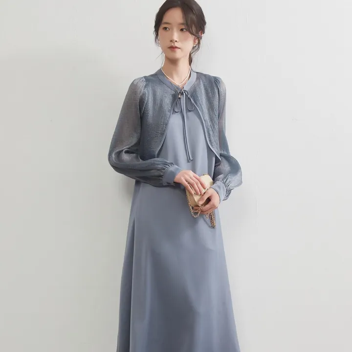 KNXO536・シアー長袖ボレロワンピースセットアップ・入園式入学式セレモニー・ルーズフィットエレガントドレス FREE/GRAYBLUE