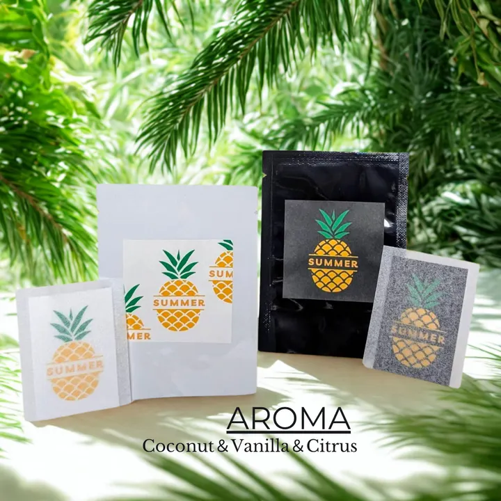 夏をイメージしてブレンドした香り「Summer」 パイナップルの精油ではなく、ココナッツやシトラス系の香りのブレンド精油を粉末加工したアロマシートです。 この機会に是非、ご利用下さい。 発送方法:レターパックなどご利用希望の際はお知らせ下さい。