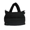 『軽さ、うれしい。身体も心もあたたかく!』 軽くてあたたかい"ダウンジャケット”みたいなトートバッグ。 使いやすい触り心地。 あそび心のあるかわいいデザイン。 両サイドにルーポケット付き 両サイドのルーポケットは中で繋がった一つのポケット。 左右どちら側からもスマートに中身を出し入れできる優れもの。 また、寒い日には、両手を入れれば、ほんのり暖かな「ハンドウォーマー」ポケットに! 屋外でのスポーツ観戦やイベントなどのお供にも最適です。 大小3つの内ポケット 2サイズのフラットポケットにはスマホなどを。 頻繁に使う小物類もすっきり収納、迷子になりがちな小物も迷わず取り出せます。 大きめポケットには、手袋などの収納に…。 たっぷりの収納力 広々としたつくり。B5ファイルもしっかり収納。 天マチ付きのファスナー開閉で、大きく開き中身が見やすく出し入れスムーズ。 毎日のお出かけに必要なアイテムはもちろん、寒暖差の大きい季節には、ストールや手袋などのかさばるアイテムも余裕で収納ができます。 たっぷり収納できるからこそ、バッグ本体の軽さもうれしいポイントです。 少ない荷物でも型崩れしにくい! 底部にはウレタンボンディングを施しました。 荷物が少ない時にも型崩れしにくくなっています。 両サイド丸カン付き 両サイドにショルダー用の金具付き。 別売りのショルダーストラップを装着すれば、ショルダーバッグとしても使用可能です。