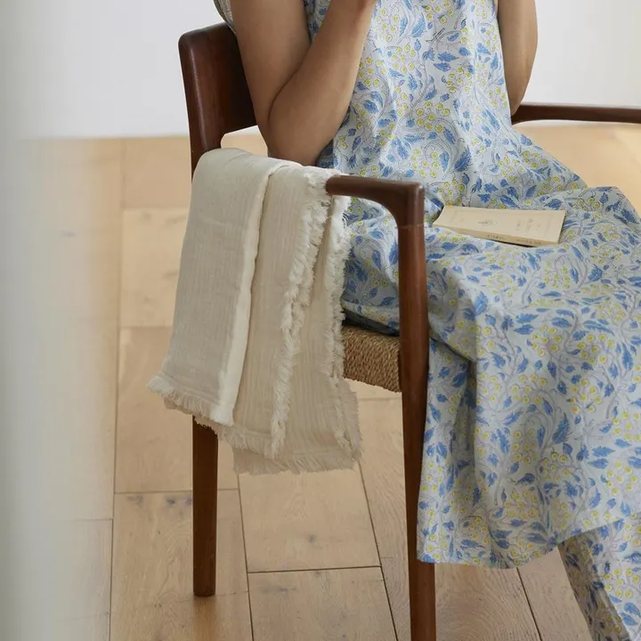 包み込まれるようなふんわり感と、通気性・保温性に優れた6重ガーゼ仕様のリネンケットです。 麻の涼やかな肌触りと綿の柔らかさが理想的なバランスを実現。日常のリラックスタイムを格別なものにしてくれます。 ガーゼの構造は層ごとに空気をたっぷりと含むため、夏は涼しく冬はふんわりと暖かく保温する優れた通気性と保温性を持っています。 洗うほどに柔らかくなる特性もあり、長く愛用することでより体に馴染んでいく感覚をお楽しみいただけます。 ソファでのリラックスタイムや、お昼寝ブランケットとしてもおすすめ。 シンプルなデザインでインテリアにも合わせやすく、洗練されたライフスタイルを演出します。 麻繊維は非常に強く綿繊維も比較的強いため、織物として作られた綿麻混紡素材は丈夫で耐久性が高いとされています。 また通気性が良く、軽量で柔らかい素材です。 ●サイズ目安 Lサイズはシングルサイズの掛け布団ほどの大きさ。 Mサイズはベビーベッドの掛け布団ほどの大きさで、ハーフケットサイズ。 Sサイズはベビーケットや、ひざ掛けとしておススメのサイズ。