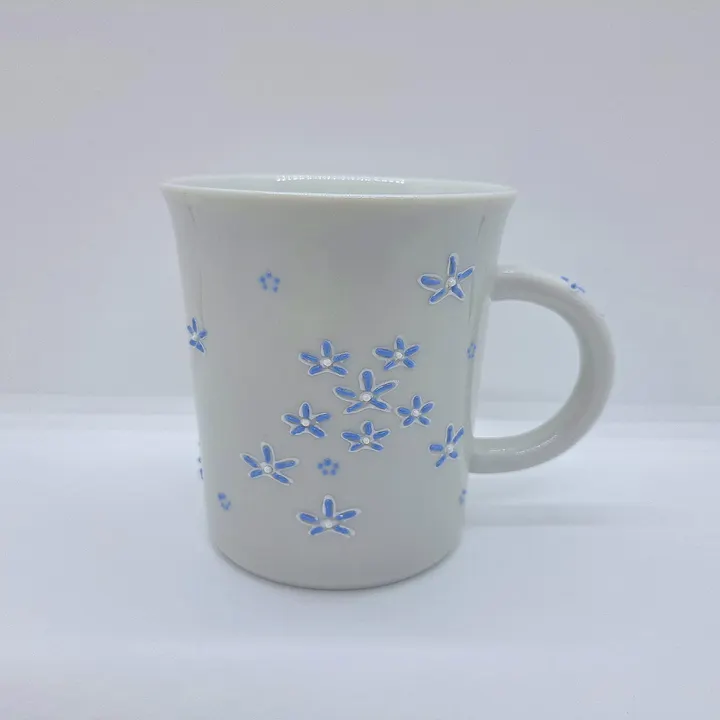九谷伝統技法「盛」。いっちんと呼ばれる独自の道具を使用して絵具を先端から絞り出し立体的に描きます。花びらの色が「盛り」上げて表現され、華やかな絵柄が魅力です。 電子レンジ:温め程度可 食洗機:使用不可