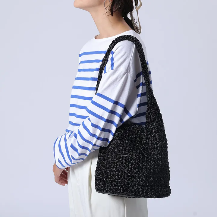 光沢のあるメタルコードで程よい艶感が魅力的なバッグ。珍しいねじりのある編み模様にして、こだわりのある仕上げにしています。マチもあり見た目より沢山荷物が入るのもうれしいポイントです。 ポリエステルは軽量で耐久性が高く、伸び縮みや型崩れがしにくい素材です。さらに吸水性・吸湿性が低いため速乾性に優れ、耐候性もあるため劣化しにくいのが特長です。また、シワになりにくく、お手入れが簡単な点も魅力です。 *マグネットボタン付 *内ポケット×1
