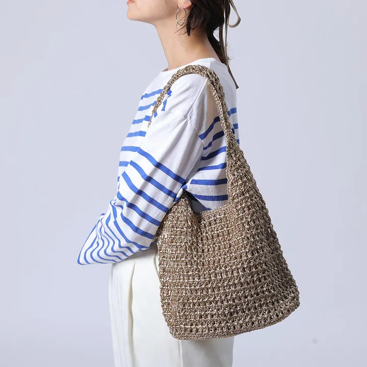 光沢のあるメタルコードで程よい艶感が魅力的なバッグ。珍しいねじりのある編み模様にして、こだわりのある仕上げにしています。マチもあり見た目より沢山荷物が入るのもうれしいポイントです。 ポリエステルは軽量で耐久性が高く、伸び縮みや型崩れがしにくい素材です。さらに吸水性・吸湿性が低いため速乾性に優れ、耐候性もあるため劣化しにくいのが特長です。また、シワになりにくく、お手入れが簡単な点も魅力です。 *マグネットボタン付 *内ポケット×1