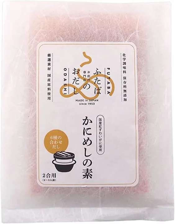 国産紅ずわいがにを使用。香り高いかにだしと、鰹節、昆布、煮干し、鯖節、椎茸の6種のおだしが合わさり、紅ずわいがにの旨味と香りを引き立たせてくれます。かにの旨味を存分に味わえる炊き込みご飯の素です。◆2合用(2〜3人前)