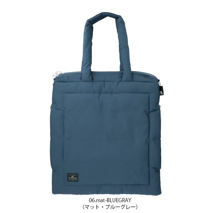 『軽さ、うれしい。』 軽くて暖かい"ダウンジャケット”みたいなトートバッグ。 持ち手が長めで肩掛けしやすい。 カラダにフィットしやすい形状です。 落ち着いたカラーで合わせやすく、なじみやすい! 両サイドにルーポケット付き 両サイドのルーポケットは中で繋がった一つのポケット。 左右どちら側からもスマートに中身を出し入れできる優れもの。 また、寒い日には、両手を入れれば、ほんのり暖かな「ハンドウォーマー」ポケットに! 屋外でのスポーツ観戦やイベントなどのお供にも最適です。 便利なポケット ルーポケットには、出し入れの多いスマホや財布を入れておくと便利です。 バッグの中身をすっきり収納してくれる内ポケット。 迷子になりがちな小物が迷わず取り出せます。 たっぷりの収納力 A4サイズのファイルもしっかり収納。 ファスナー開閉で、大きく開き中身が見やすく出し入れスムーズ。 容量はあるのに、マチなしでかさばることなくすっきり持てます。 お出かけのサブバッグとして、何かと荷物が多くなりがちな出張時にも便利です。 たっぷり収納できるからこそ、バッグ本体の軽さもうれしいポイントです。 両サイド丸カン付き 両サイドにショルダー用の金具付き。 別売りのショルダーストラップを装着すれば、ショルダーバッグとしても使用可能です。