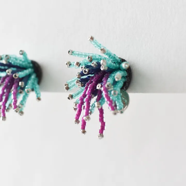 幾重にも重なって生えた葉があたかも仏の座 蓮台を連想させるホトケノザ その中心には 赤紫色の鮮やかな花がぴょんぴょんと 飛び出している 愛らしさと神聖さを併せ持つ魅力的な草花です *こちらの商品は、お客さまの耳の形状やピアスホールの位置によっては、装着位置がご満足いただけない場合がございます。 material SILVER925(ピアス金具)、ガラスビーズ、銀糸、真鍮、チタン、フェルト、本革、シリコン *シルバービーズはパラジウムメッキ加工を施したものを使用しております *下地カラーはベージュに変更しております size 約Φ23x25mm weight 約2.5g *CACICOの商品は全て1点1点制作しているため、個体差がございます。商品写真と差がある場合がございます。ご了承の上、ご購入ください。 *金属アレルギーの方はご使用をお控えください *受注生産のため、ご注文確定後1週間~10日以内に商品を発送いたします