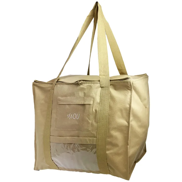 大容量設計: 買い物やレジャーに最適なサイズです 透明ポケット: 前面に便利な透明ポケット付きで、中身の確認や小物の収納に便利です 耐久性: 丈夫な不織布素材と補強された持ち手で、重い荷物も安心して運べます 持ち手仕様: 長めの持ち手で肩掛けも可能、快適な持ち運びを実現します