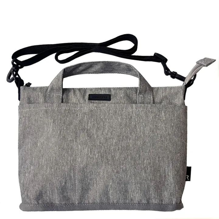 ちょっとそこまでの、身軽なお出かけに便利。 スマホやウォレット、A5ノートなどが収納可能。 口元はファスナー開閉で、安心なつくりです。 スリムな底マチながら、安定して自立するよう工夫された底面。 自立するからモノの出し入れがスムーズ! 取り外し&長さ調節可能なショルダーベルト付き。 ショルダーベルトを外せば、ミニトートバッグとして、またバッグインバッグとしても使用可能。 正面、背面それぞれに2つに仕切られたルーポケット付き。 出し入れ頻度の高いアイテムの収納に便利です。 お出かけを心地よく。 毎日使うほどに、“グッドデザイン”を実感できます。