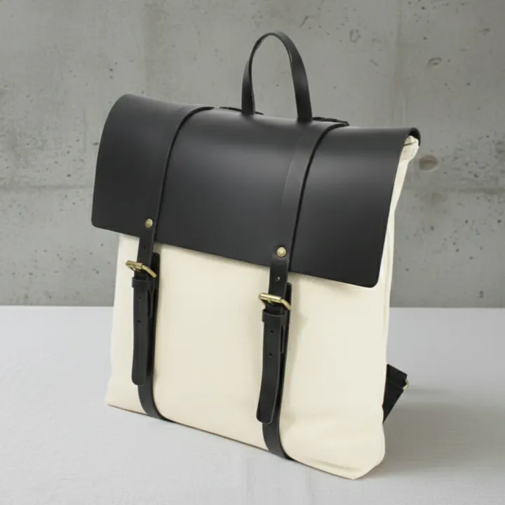 キャンバス レザー フラップバックパック 全3色|Chair<チェア> ブラックレザー x 生成りキャンバス