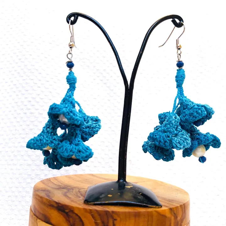 トルコoyaピアス トルコキキョウ スカイブルーのお花と花びらの中心からのぞくパールが可憐 伝統手工芸品 L1016