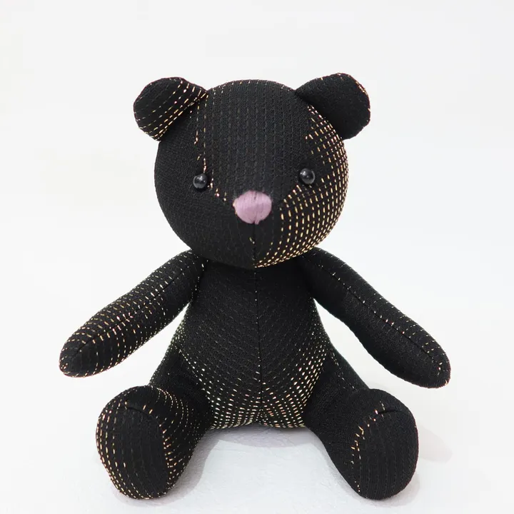 海外のハイブランドで採用された特殊なニット生地「TRICOLUM」で制作したテディベア「ENTOKUN(えんとくん)」です。「TRICOLUM」は、見る角度により輝き方が変化する美しい生地です。「光を編む」という発想からインスピレーションを得て、生地の設計をしました。「ENTO」には北関東地方の方言で「座る」という意味があります。また「遠大な謀りごと」という意味もあります。「ENTOKUN」を手にして頂いた方が、「様々な夢を実現するよう計画を立て努力する」という想いを込めてネーミングしました。 ぬいぐるみの生産で一時代を築いた栃木県・おもちゃの街にある工場で型起こしを行い、その関連工場にて制作をしております。通常、毛足のない生地でぬいぐるみを制作すると縫製の誤魔化しが効かず難しいとされるのですが、この特殊な生地で作ったテディベア『ENTOKUN(えんとくん)』は技術の高さが伝わる美しい仕上がりになりました。