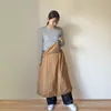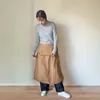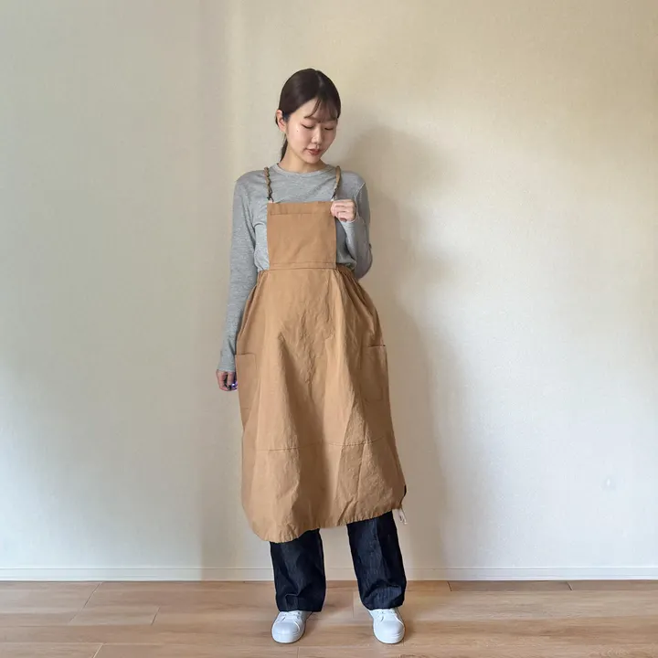 2wayランタンスカート 肩ひもをかけてエプロンスタイルとして 肩ひもを外してスカートスタイルとしてご着用できます 肩ひもにゴムを入れていますので 肩にかけても落ちにくく 肩から外してもだらりとならず 一つのデザインとしてお楽しみ頂けます ランタンスカートにポケットの胸当てが付いています このポケットも2way エプロンスタイルとスカートスタイルとも使えるようにポケットを両方に付けています スカートの両脇にもポケットがあり 胸当てポケットと合わせて3つのポケットは容量が多く 頼もしいパーツ 肩紐は金具(ナスカン)仕様で取り外せます カジュアルウエアとしてもワークウエアとしても オールシーズン楽しめるアイテム 2wayランタンスカートは活躍の場が広がります