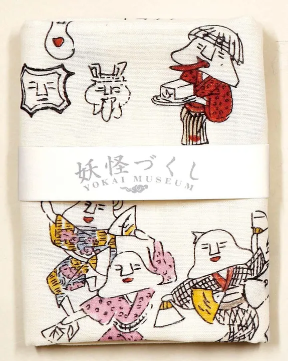 妖怪づくし ふんわり手拭い 「人面草紙」 ふんわりとした肌触りや吸水性の良い、二重ガーゼ素材を使用。安心の日本製です。 「ニッポンの不思議でおもしろい世界:妖怪シリーズ」江戸時代、風俗・奇談・静物・風景など描いた絵画「浮世絵」。楽器の妖怪たちが夜行する絵巻や、器物に取り付く付喪神の妖怪絵巻など、妖怪のおもしろおかしい世界を、一枚の手拭いに仕上げました。 日本の妖怪絵画コレクター:湯本豪一 監修