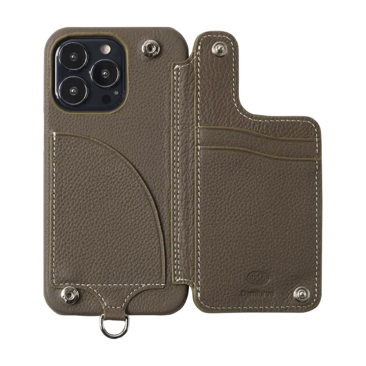 2023年9月より弊ブランドはDemiurvo(デミウルーボ)改めDEMIU(デミュウ)に改名いたします。 それに伴い、DEMIUの名を配したブランドネーム・ロゴが採用されます。 一部商品に関しては、Demiurvoとして引き続き販売いたしますが順次モデルチェンジ予定です。 何卒、ご理解のほど宜しくお願い致します。 カラー豊富なお財布機能つきiPhoneケースPOCHE(ポシェ)。 選び抜かれた上質なフランス産牛革を使用したiPhoneケース。 本革を使用しているため、ひとつひとつとして同じ革がないところも魅力。 思わず目を惹かれるカラーと質感で存在感抜群のアイテムです。 右扉の内側に2段のカードスリットと隠しポケット、左側に収納ポケット、 外側に小銭入れを施しお財布としての機能を備えた便利なアイテム。 蓋をささえにして横置きできるのでYouTubeやテレビ会議にも便利。 ショルダーなどを付けられるリングが付いているので、別売りのショルダーストラップとのセットや色違いのストラップでコーディネイトするのもおすすめです。※iPhone12 miniおよび13miniの背面のカード入れに関してですが左側(ケース装着側)の仕切り部分と、右側の裏ポケットにはカードはお入れいただけません。右側のカード入れにはカード段が1つの仕様となります。ご注意ください。 ※ストラップは別売りです。 ー仕様ー・素材本体:牛革ケース部分:ポリカーボネート金具:ニッケル・重量約80g