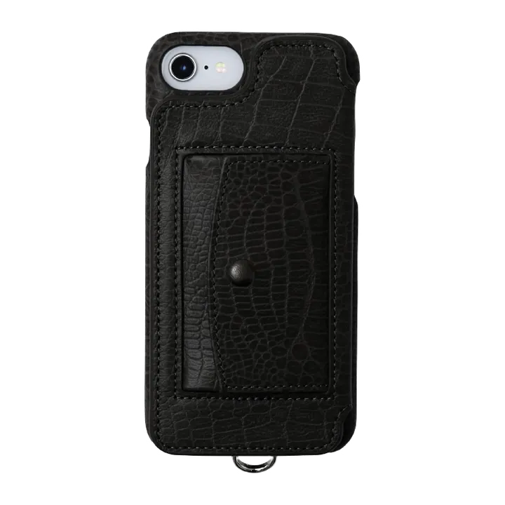 POCHE CROCO (with button) iPhoneSE3/SE2/8/7/6s/6 クロコ型ブラック