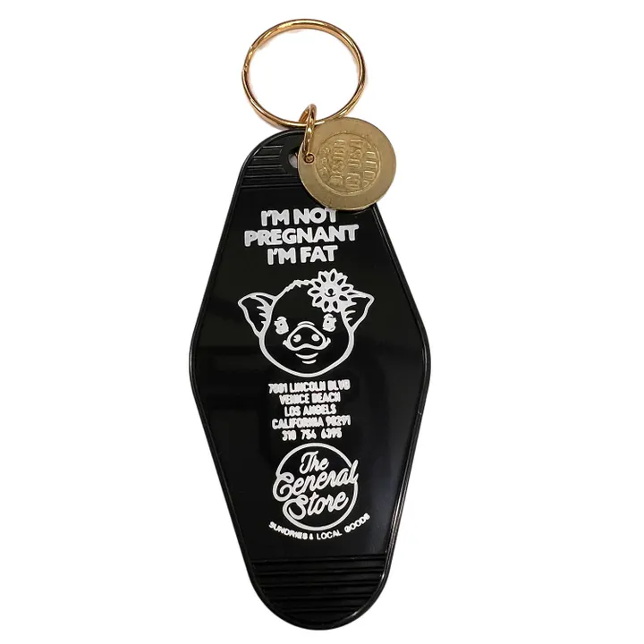 1960?1980年代頃にアメリカのホテルやモーテルで実際に使われていたキーホルダーを復刻しました。 印刷がホットスタンプになっているので、プリント文字が凹凸があり存在感があります。 ガレージに飾ってもおしゃれです! ことわざをイメージしております。 妊娠してません。太っているだけです。食べないでください。 個別包装 パッケージ入り
