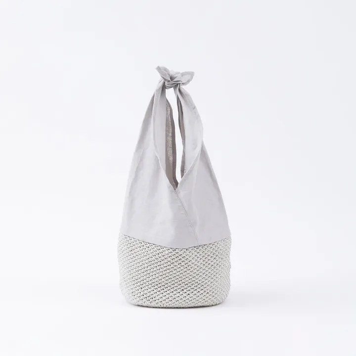 持ち手と本体の生地が切り替えになったバッグ。結び目を調整して持ち方のアレンジが可能です。使わない時には畳んで収納しておくことができます。バッグインバッグにもおススメ!