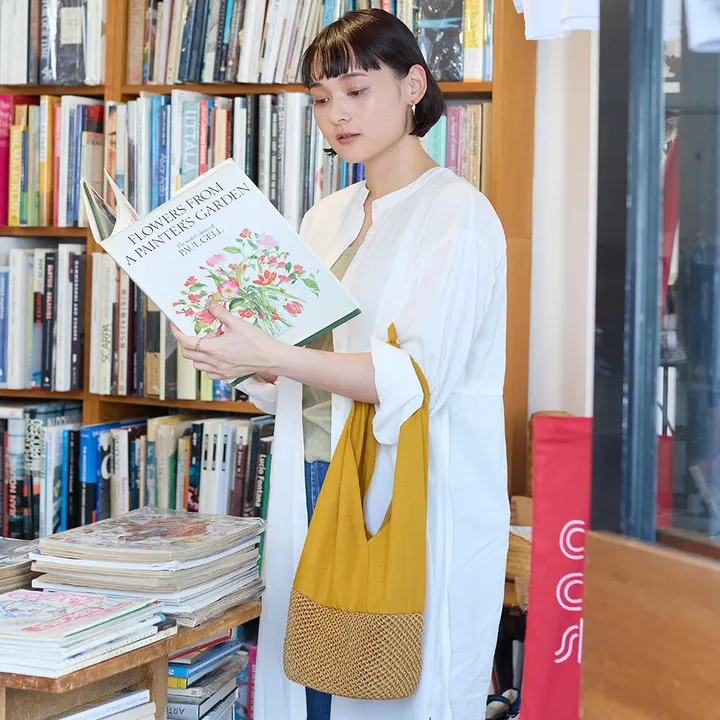 リネンコットンの畳める 肩掛けあずまバッグ MT(マスタード)