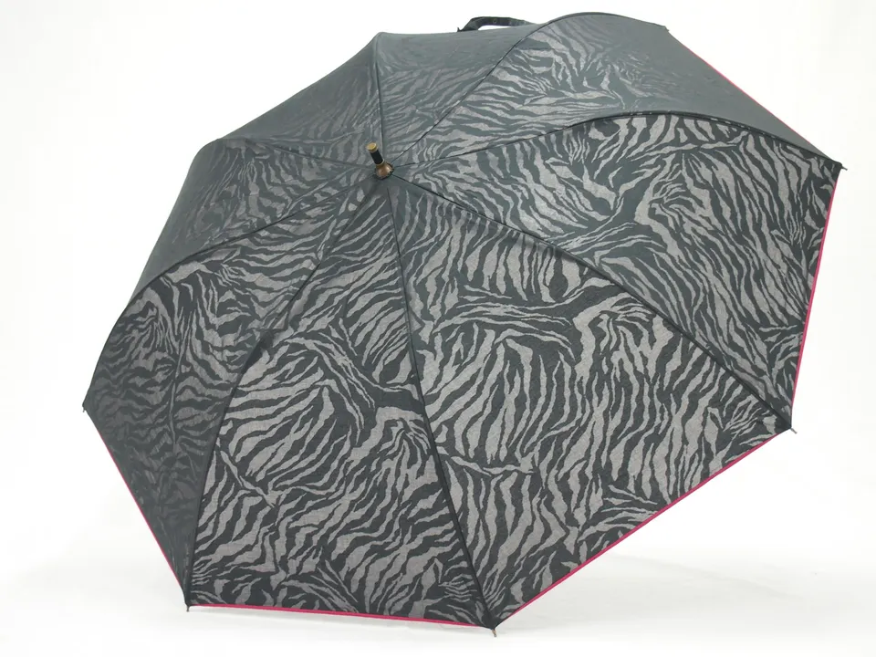 日本政府 推奨商品 ショートワイド傘 綿×ポリエステル ゼブラ透かし柄 晴雨兼用 UVカット 27377 ブラック×レッド