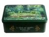 蝶つがいのお洒落なデザイン缶はギフトにもぴったり。小物やハガキ入れなどに最適です。