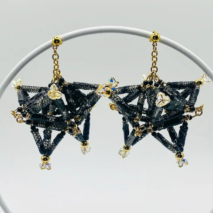 3D スター アップサイクル ピアス/イヤリング(Black Lace)