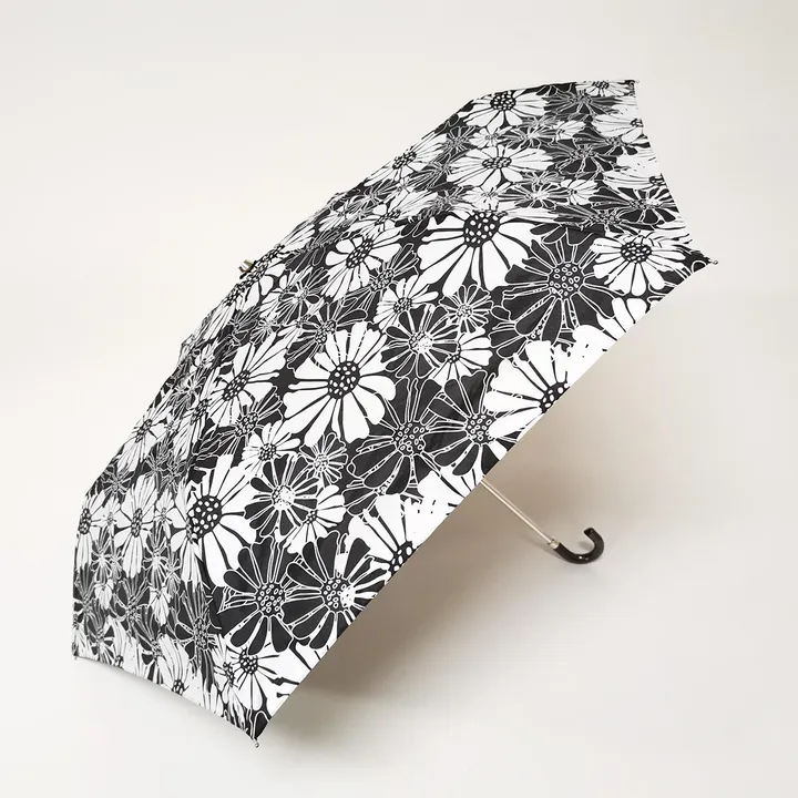婦人折りたたみ傘 ガーベラ柄 雨晴兼用傘 1306 ブラック×オフホワイト