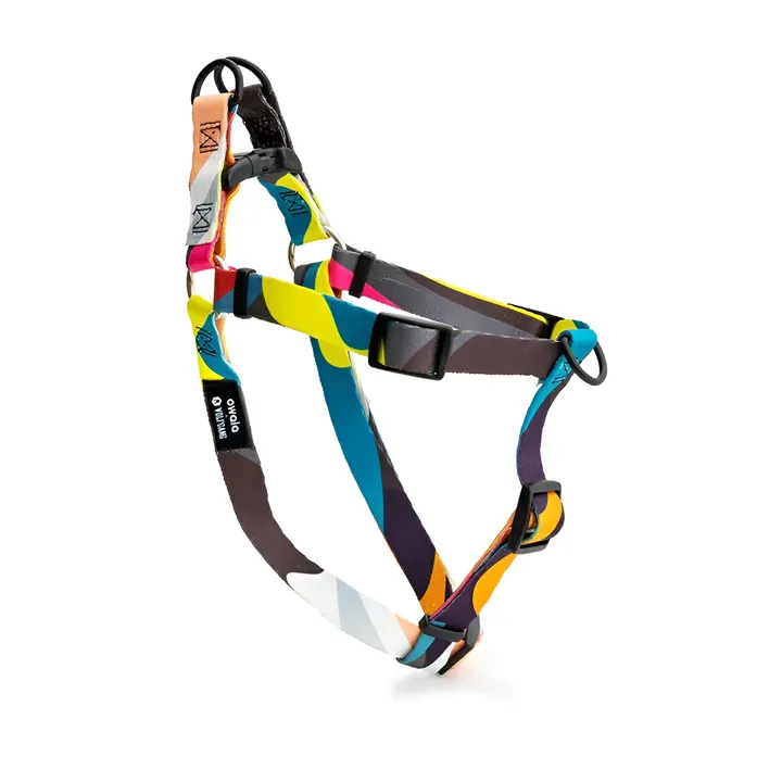 犬用のハーネス。 Owalaの美しいウォーターボトルからインスピレーションを得たデザインです。 WOLFGANG MAN & BEAST のリードやカラー(首輪)は、車のシートベルトなどにも使われる、強度と柔らかさ、耐久性を兼ね備えたポリエステル100%のウェビング素材を使用しています。 水を吸い込まない、極細のポリエステル糸を非常に密に編むことによって、海や川でも使用可能、汚れや臭いもつきにくい特徴があります。 さらに、ウォッシャブルで洗濯も可能。 アウトドアでの使用にもピッタリです。 製法には、ウェルディング製法( 生地を熱で溶かすことによって生地同士を接着し、強い耐久性を実現する溶着製法 )を採用。 糸による縫い目が無いので、飼い主・愛犬にとって快適な使い心地を実現。通常の縫製による擦れからの糸のほつれが生じることがありません。   WOLFGANG MAN & BEAST のすべてのドッグプロダクトは、こだわりのアメリカンメイド。 ドッグプロダクトは、大切なパートナーである愛犬が、長年愛用できるものであってほしい。 その思いから、選び抜かれた素材を使い、品質にこだわり、WOLFGANG MAN & BEASTのすべてのドッグプロダクトはアメリカ国内で生産されています。 <Sサイズ:対応犬種の目安> ジャック・ラッセル・テリア/パピヨン/マルチーズ/シーズー/ヨークシャーテリア/キャバリア/ホワイト・テリア/ミニチュア・ダックス ...etc <Mサイズ:対応犬種の目安> パグ/コッカスパニエル/シュナウザー/ボストンテリア/フレンチブルドッグ/オーストラリアン・キャトル・ドッグ/スタッフォードシャー・ブル・テリア/ブリタニー/サルーキ/ビーグル/柴犬/ダルメシアン/ウェルシュ・コーギー/ボーダー・コリー ...etc <Lサイズ:対応犬種の目安> ボクサー/ゴールデンレトリバー/ジャーマン・シェパード/ロットワイラー/シベリアン・ハスキー/ブルドッグ/コリー/アメリカン・ピットブル・テリア ...etc 上記の犬種はあくまで目安です。個体によりサイズは変わりますので、購入前に必ず愛犬の実際のサイズを計測して適合サイズを確認してください。
