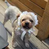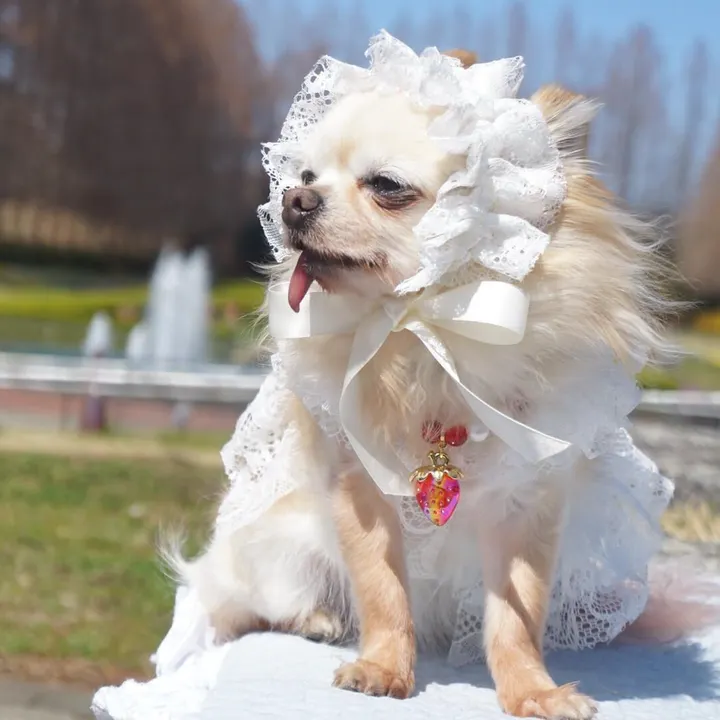 ※使用しているレースは予告なく別の似た物に変わる事がございます。ご了承の上ご注文下さいませ 【レースカチューシャ White】 ゴムで調整してからリボンを結ぶ、二段階構造になっているのでリボンを結びやすいのが特徴です。 動くわんこに装着するのにぴったりな構造です♪ ゴムは調整可能です。 また、ヘッドアクセサリーとしてだけでなく、ぜひ首にも着けてコーディネートしてみてください♪ 首元がゴージャスになるので可愛いです! ●ゴムで調整可能(柔らかいマスクゴム使用) (結んだ状態でお届けしますが、万が一きつかった時用にゴムを長めに残したままお届けします。結び直すなどして調整可能です。余分なゴムはお客様自身でカットお願いします。) ●小型犬の子はだいたい付けられるサイズです(例:チワワ、トイプー、シーズー、パグ、ヨーキー、Mダックス、Mシュナなど)