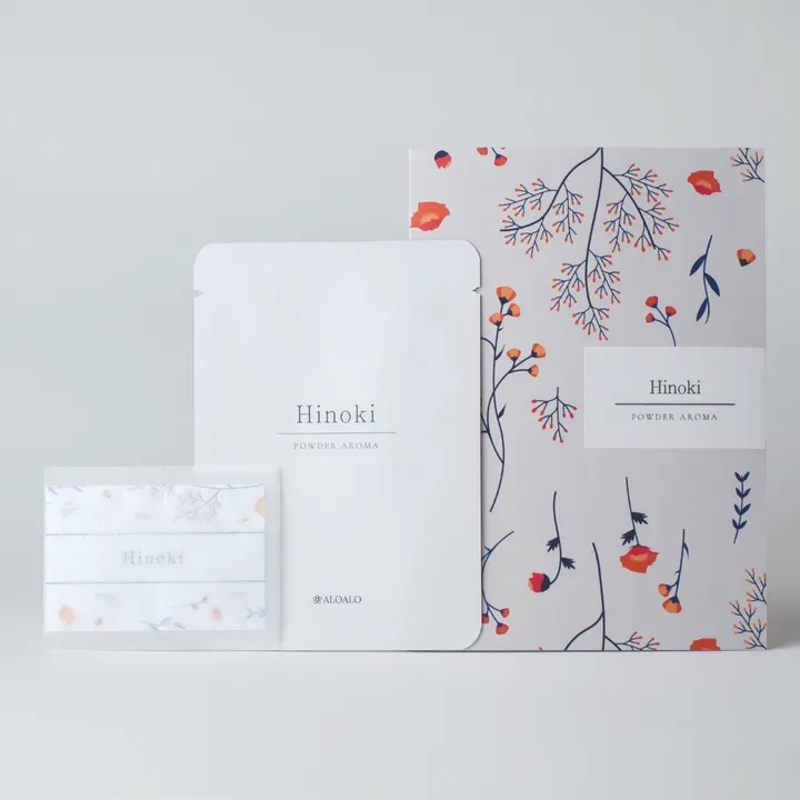 海外でも人気、国産ヒノキの香り アロマ業界初粉末アロマ「POWDER AROMA」をシート状に加工、アルミ袋で密封した商品で精油を最後の1滴まで有効に使用した商品です。 器具不用で袋を開封するだけの簡単アロマ、サシェや匂い袋の様にご使用ください。 アルミ袋を開封しない限り芳香しない袋入り商品で、在庫管理もしやすくなりました。 プチギフトにも人気の商品です。 【精油詳細】以下の精油を粉末加工しています。 学名:Chamaecyparis obtus endl 原産国:日本 抽出方法/部位:水蒸気蒸留法/樹木 ※原産国は、予告なしに変更になる場合があります。