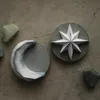 『ほのかに光る星屑にアロマを香らせて』 モルタルの土台に石膏でできた星屑のオブジェを合わせました。 夜のリラックスタイムにぴったりのアロマストーンです。 精油を滴下すると1日〜数日香り続けます。 全4色のなかからお選びいただけます。 *Gold star *Silver star *Blue star *Strawberry star 【 アロマストーンとは? 】 精油を滴下するだけで香りを楽しめる芳香器。 半径1m程度の空間でふわっと優しく香ります。 電気・火・水を使わないためエコで、 デスクやベッドサイドでも気軽に使うことができます。 お手入れの必要もありません。 香りが充満しないので、 強い香りが苦手な方にもおすすめです。 また、香りは1日〜数日程度で消えてゆきます。 そのため1つのアロマストーンで色々な香りをお楽しみいただけます。 【 モルタルとは? 】 砂・セメント・水を混ぜ合わせてできる建築材料。 多孔質のため、精油を吸い、アロマストーンのように芳香を楽しむことができます。 気泡や色のムラができやすいため、ひとつひとつ異なる表情を見せてくれます。 ハンドメイドの味としてお楽しみください。 【 DETAIL 】 まんまるの土台にほのかに光る星型のアロマストーンを合わせました。(※取り外し不可) 星のオブジェの煌めきは、ぽんぽんとランダム塗装しています。 手のひらサイズで場所を選びません。 *Gold star  モルタルの土台にゴールドがキラキラ輝くカラー *Silver star  モルタルの土台にシルバーがキラキラ輝くカラー *Blue star  モルタルの土台にスキニーブルーが輝くハンサムカラー *Strawberry star  石膏のベージュの土台にコーラルピンクが輝くフェミニンカラー 模様は一点一点異なります。 【 SIZE 】 6.5cm×6.5cm×2.5cm 【 おすすめの使い方 】 ✔︎ベッドサイドに置いて、くつろぎ時間のお供に ✔︎お気に入りのスペースに置いて、インテリア小物として  ✔︎デスクに置いて仕事中の気分転換用に