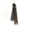 洗いをかけて風合いをだした3ラインのフリンジウールストール BE