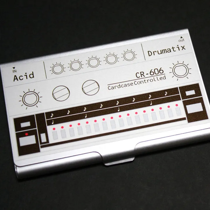 Acid CardCase Drumatix CR-606 名刺入れです。 中毒性の高いアシッドリズムが聴こえてきそうです! アルミケースを採用し質感を大事にしました。 商品詳細 〈商品内容〉 名刺ケース本体 説明書