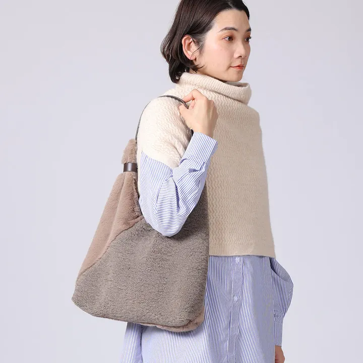 ファーとボアを使った表情豊かな2WAYバッグは、付属のベルトの脱着でオンオフの使い方ができるので毎日大活躍のバッグです。 持ち手は柔らかいPUを芯地に縫製を施して肩にやさしいデザインに仕上げています。 動物保護の観点から生まれたフェイクファーは、デザインやカラーバリエーションが豊富な為、ファッションからインテリアに至る様々なアイテムに使用されています。耐久性に優れており、適切なお手入れをすれば永くご愛用いただける環境にやさしい素材です。 この製品は、日焼け、汗や水に濡れた場合の摩擦により、他の物への色移りや変色する場合がありますのでご注意ください。 *形アレンジベルト付 *マグネットボタン付 *内ポケット×1