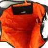 本体生地にミリタリーテイストのリップストップナイロンを使用し、裏地には鮮やかなオレンジの生地でデザイン性と視認性を両立。 コンビニ袋からインスパイヤ―されたユニークなフォルムが目を引くトートバッグ。 リフレクターが織り込まれた取り外し可能なロープは斜めがけ可能で夜の外出にも安全です。