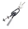 スナップフック付きキーリング、クライミングロープにダンベル&「NEVER GIVE UP」プレートペンダント、鋳造金属、クロームメッキ、マットブラック/シルバーカラー