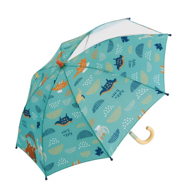 前が見えやすい1コマ透明窓付きキッズ雨傘 透明窓からお子さまの様子が伺えるあんしんこども傘です。ワンポイントでついているolentaalla【ここにいるよ!】を意味する文字とカバさんは反射プリントになっており、夜など暗い場所でライトが当たると反射してキラキラ光ります。 カラフルな樹脂製の露先と石突は丸みを帯びた形状になっているので、とがった部分が人に当たる・目を突くといった危険を低減します。さらに、開閉時に指を挟みにくいろくろや、留めやすい太めのネームバンドなど、初めて傘を持つお子さまがスムーズに使える工夫がたくさん! 「kukka hippo」のブランドロゴが刻印された手元は優しい手触りの合板製です。また、ネームバンド内側には名前が書けるお名前タグが付いています。 おそろいのレインポンチョ・コートやレインブーツと組み合わせたトータルコーディネートもおすすめです。 商品リニューアルで透明窓の縁にも反射テープが付きました。