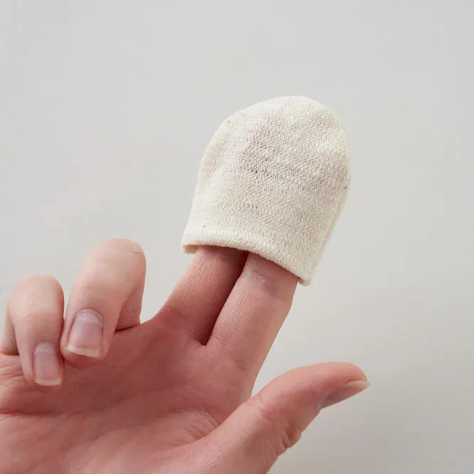 手紡ぎのニット生地で小鼻の横などが洗いやすい!! 『手紡ぎの洗顔ミニミトン』 生成