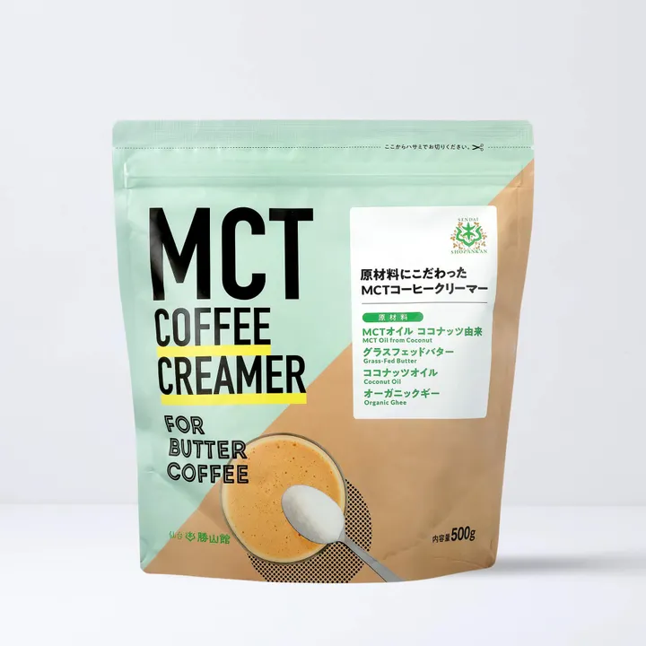 スプーン1杯で簡単・美味しい 当店2番人気「本格バターコーヒー」の素 「バターコーヒー」とはブラックコーヒーにグラスフェッドバターorギーとMCTオイルを混ぜたコーヒーのこと。 体脂肪になりにくい「置き換え食」としてダイエッターに人気のドリンクです。 MCTコーヒークリーマーならお好みのコーヒーに混ぜるだけ。 成分の約70%を厳選された良質な脂質(ココナッツ由来MCTオイル、グラスフェッドバター、ココナッツオイル、オーガニックギー)で構成。 MCTオイルの中でもより素早く消化・吸収されやすい「C8(カプリル酸)」のみを贅沢に使用。 空腹感を感じづらく素早くエネルギーになるので、食事の置き換えやおやつ代わりにぴったり。 ※アレルギー成分:乳成分 ※SDGsの取り組みとして、計量スプーンの付属を廃止いたしました