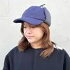 細めのリブ生地にボアの耳当てを付けたキャップ。耳当てを留める紐は柄の入ったドローコード。耳当ては後部もすっぽり隠れるサイズ感。