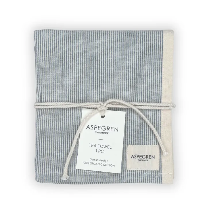 食卓に、時代に左右されない上質さを。 オーガニックコットンを100%使用し、丁寧に織り上げたティータオルです。 柔らかさと耐久性を兼ね備えた生地は、吸水性も抜群。繰り返しお洗濯しても、その風合いを損なうことなく長くご愛用いただけます。 清潔感のあるナチュラルな雰囲気のティータオル、どんなキッチンにも自然に馴染みます。 食器拭きとしてはもちろん、カゴの目隠しや、キッチンを明るく彩るインテリアのアクセントとしても◎ ティータオルにはループが2カ所付いています。 キッチンの高さにあわせて縦・横選んでかけられます。 飽きのこないシンプルなデザインなので、引っ越し祝いなどにもオススメです。 環境に配慮したAspegrenのティータオルはプラスチックは使用していません。
