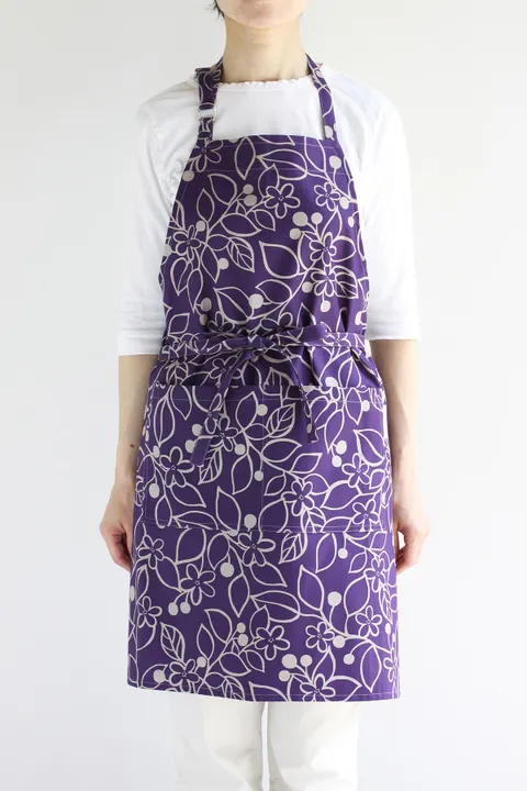 〈日本製〉フラワープリント ショートエプロン 2 パープル